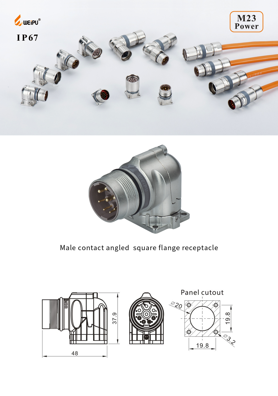 M23DJ-ZL Male contact angled square flange receptacle IP67 3 - WEIPU