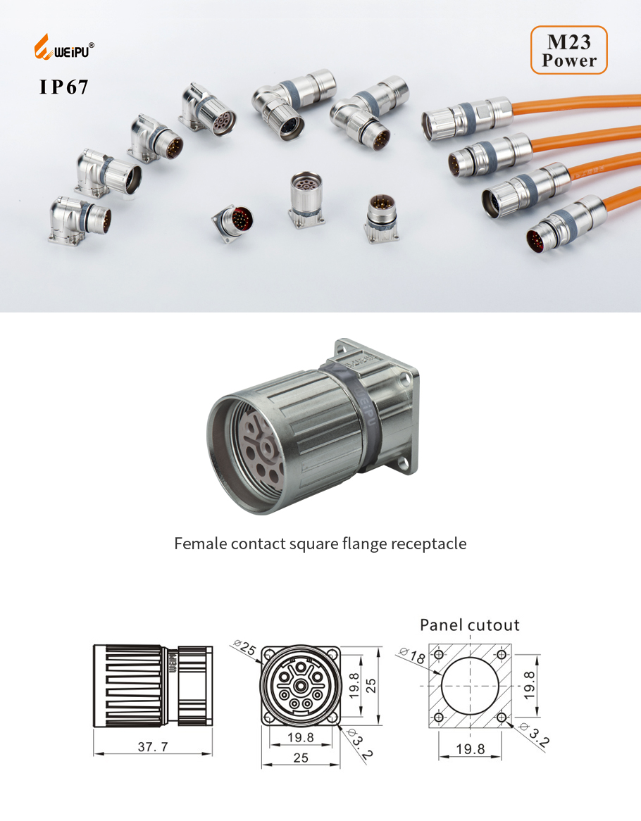 M23DK-Z Female contact square flange receptacle IP67 3 - WEIPU