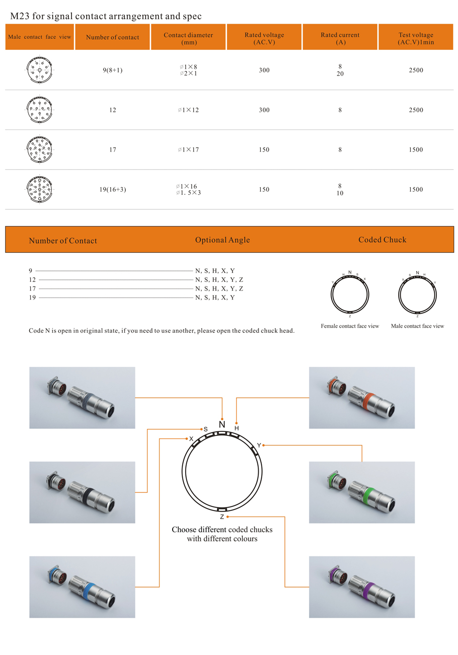 | 02、Female contact cable connector | b、Coded chuck N: Gray (Standard), S:Black (Special order) H: Orange (Special order), X: Blue (Special order) Y: Green (Special order), Z: Purple (Special order) |