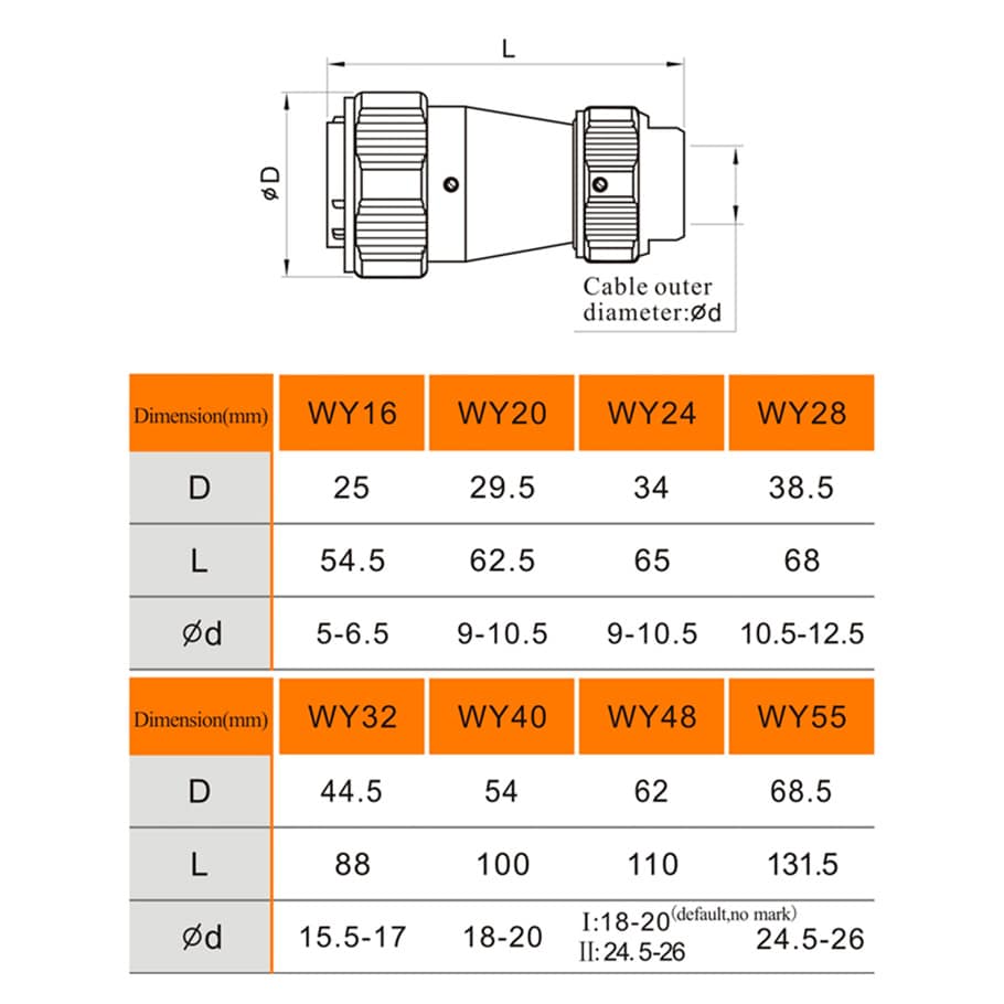 WY16-TE、WY20-TE、WY24-TE、WY28-TE、WY32-TE、WY40-TE、WY48-TE、WY55-TE