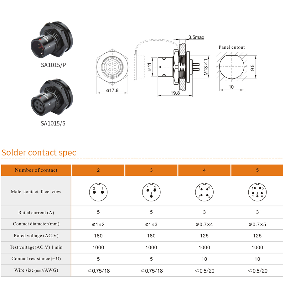 | 01、Cable connector(>SA1210/P_ _ _ >SA1210/S_ _ _) | a、Male contact |