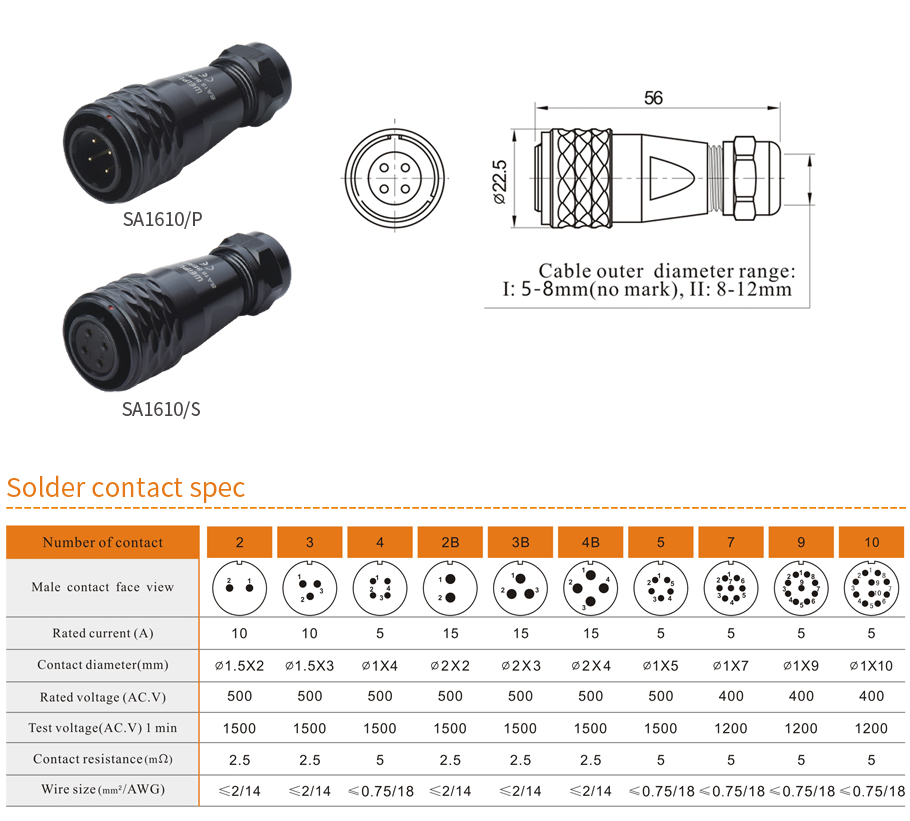 | 02、In-line cable connector(>SA1611/P_ _ _-_ >SA1611/S_ _ _-_) | b、Fmale contact |