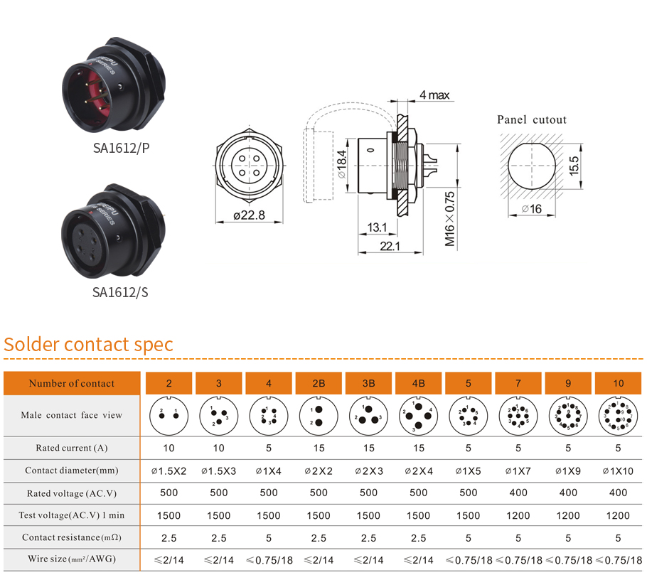 | 03、Rear-nut mount(>SA1612/P_ _-_ >SA1612/S_ _-_) | c、Number of contact |