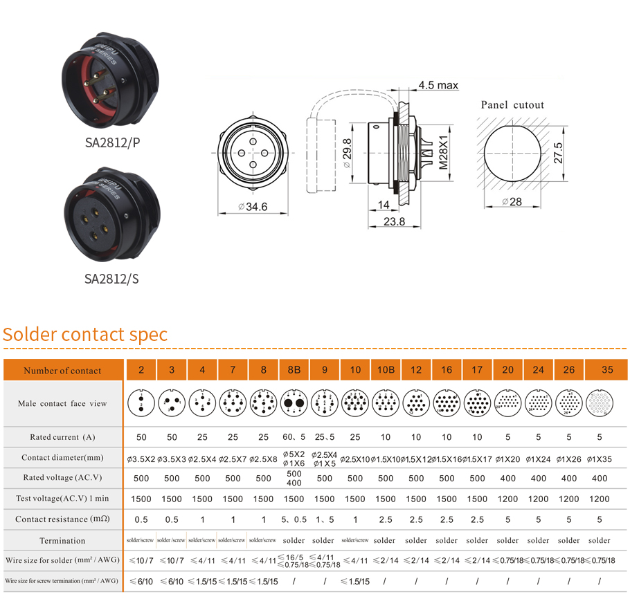| Termination | Solder:SA6,SA8,SA10,SAI2,SA16,SA20,SA28 |