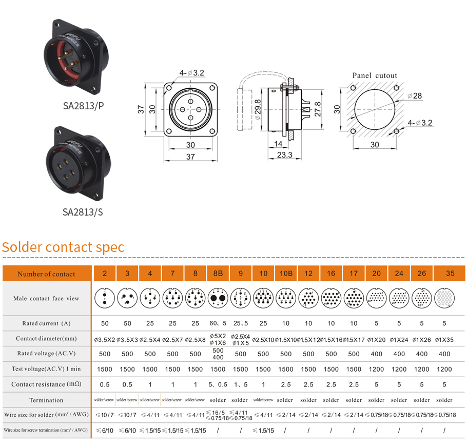 | 03、Rear-nut mount(>SA2812/P_ _-_ >SA2812/S_ _-_) | c、Number of contact |