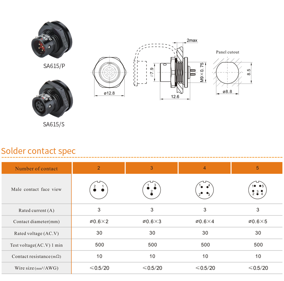 | 04、Front-nut mount(>SA615/P_ _ >SA615/S_ _) | d、Fmale contact |