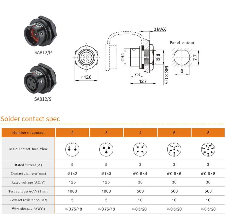 | 03、Rear-nut mount(>SA812/P_ _ >SA812/S_ _) | c、Number of contact |