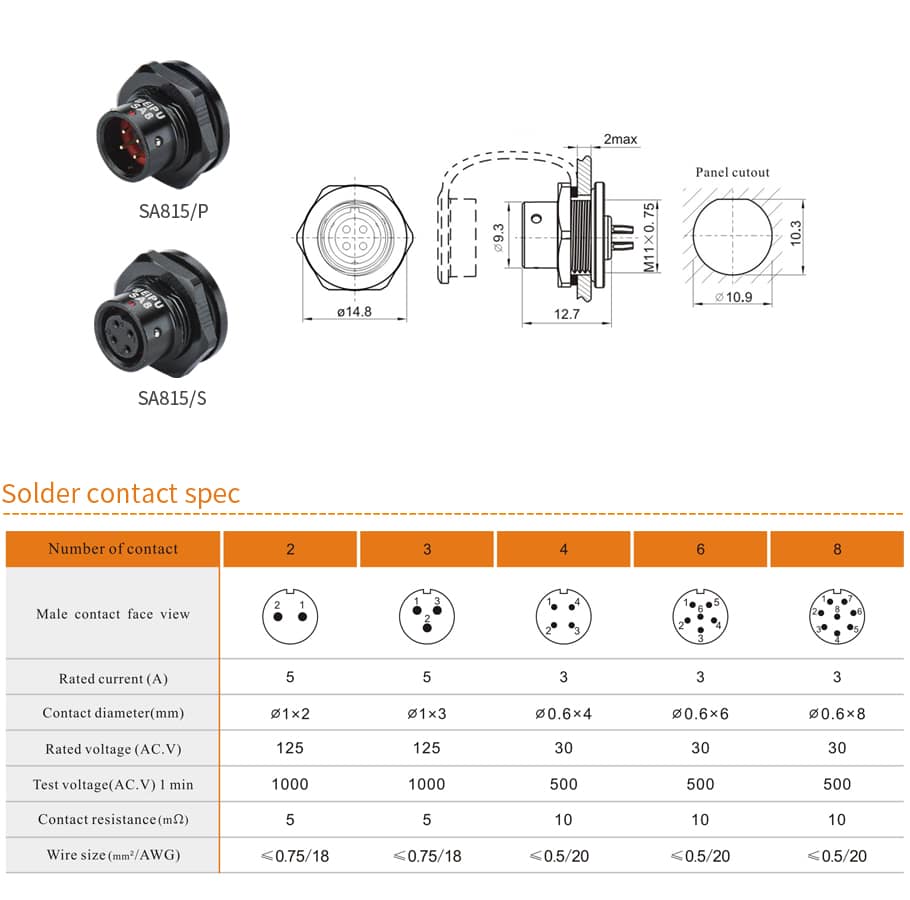| 04、Front-nut mount(>SA815/P_ _ >SA815/S_ _) | d、Fmale contact |