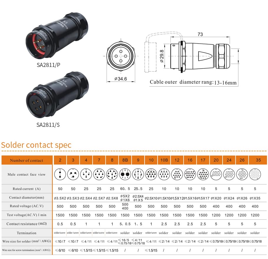 | Crimp: SA16,SA20,SA28 | |