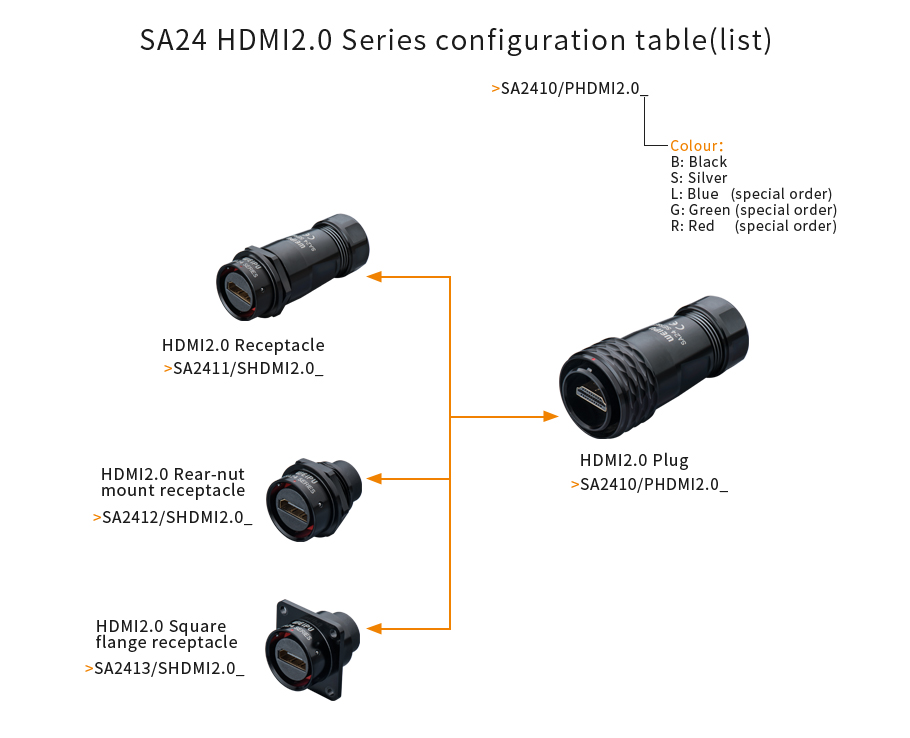 WEIPU HDMI2.0 Rear-nut mount receptacle SA2412/SHDMI2.0