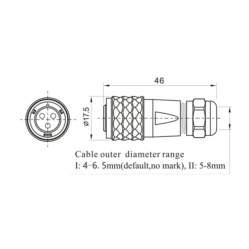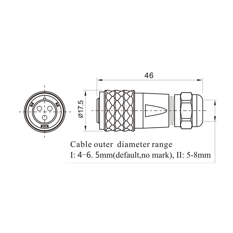 | 02、Angled cable connector(>SF1214/P_ Ⅱ >SF1214/S_ Ⅱ_) | b、Cable outer diameter(Ⅰ: 4-6.5mm,Ⅱ: 5-8mm) |