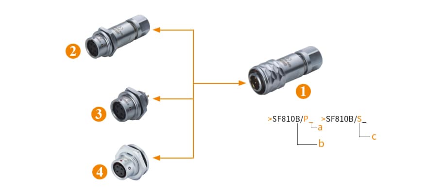 | 02、In-line cable connector(>SF811/P_ _ >SF811/S_ _) | b、Male contact |