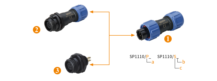 | 02、In-line cable connector(>SP1111/P_ >SP1111/S_ ) | b、Number of contact |