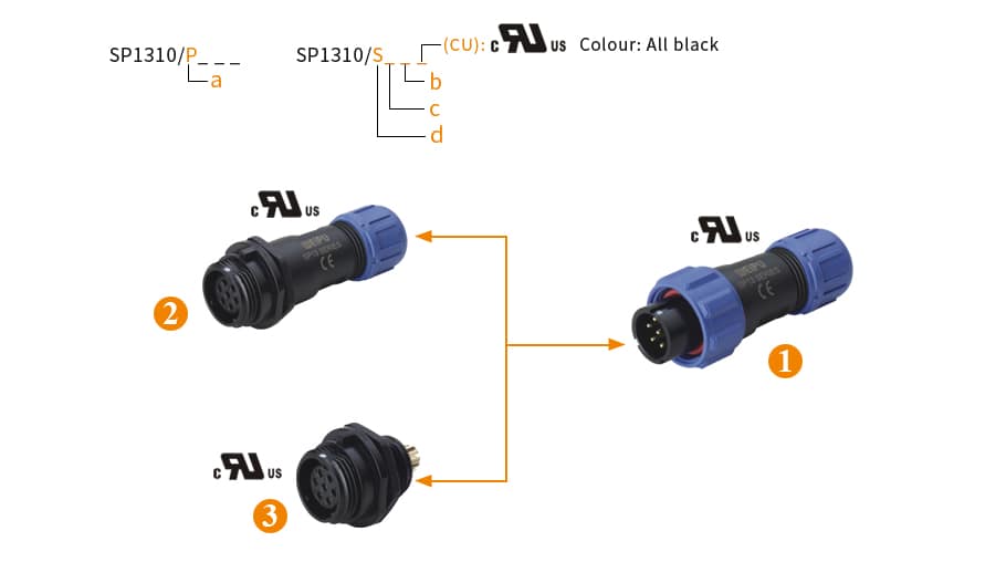 | 02、In-line cable connector(>SP1311/P_ _ _ >SP1311/S_ _ _) | b、Cable outer diameter: I: 4-6.5mm(default, no mark), II: 5-8mm |