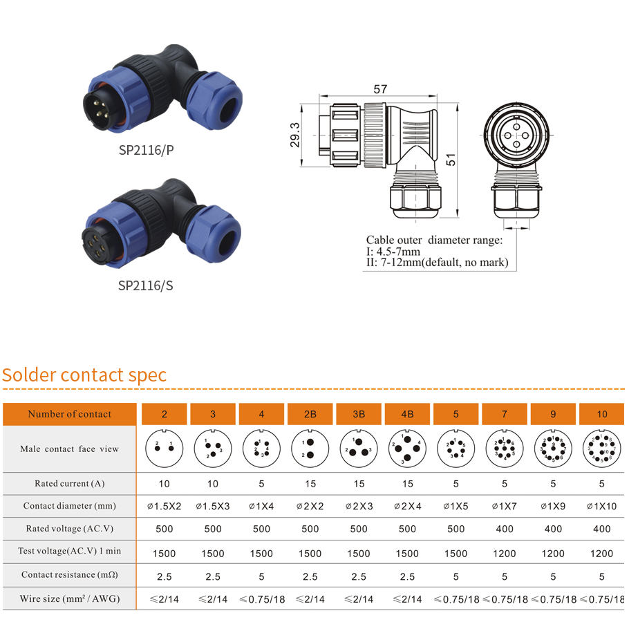 | 02、Angled cable connector(>SP2116/P_ _-_ >SP2116/S_ _-_) | b、Fmale contact |
