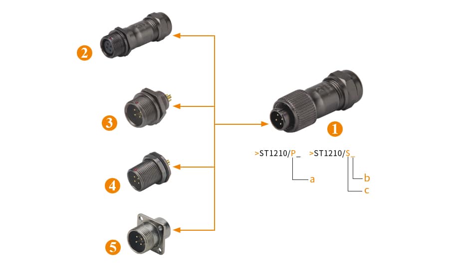 | 02、In-line cable connector(>ST1211/P_ >ST1211/S_) | b、Number of contact |