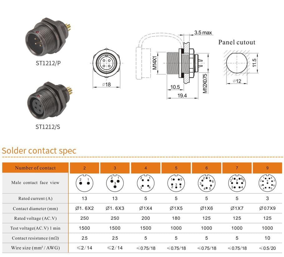 ST1212/P ST1212/S Rear-nut mount IP67 3 - WEIPU