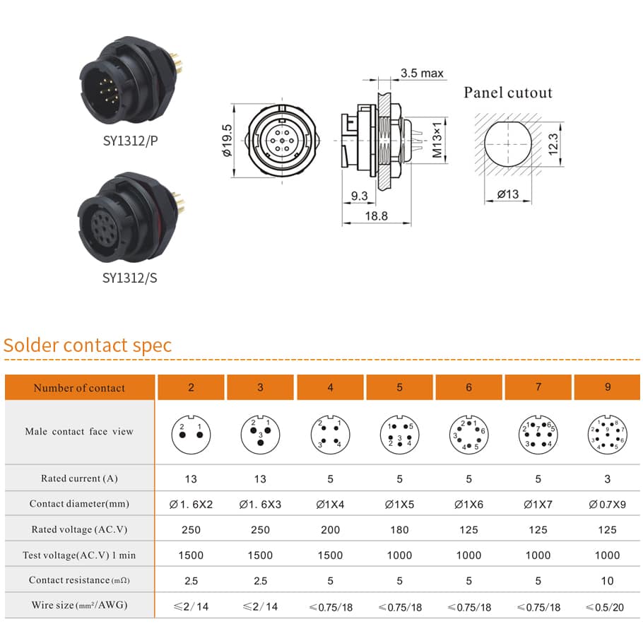 | 01、Cable connector(>SY1310/P_ _ >SY1310/S_ _) | a、Male contact |