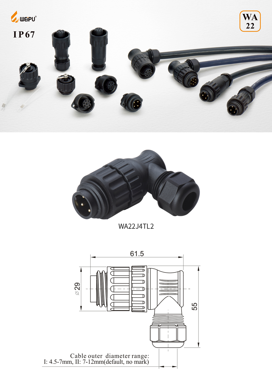 | 02、WA22J4TE2(3+PE male cable connector, screw termination) |