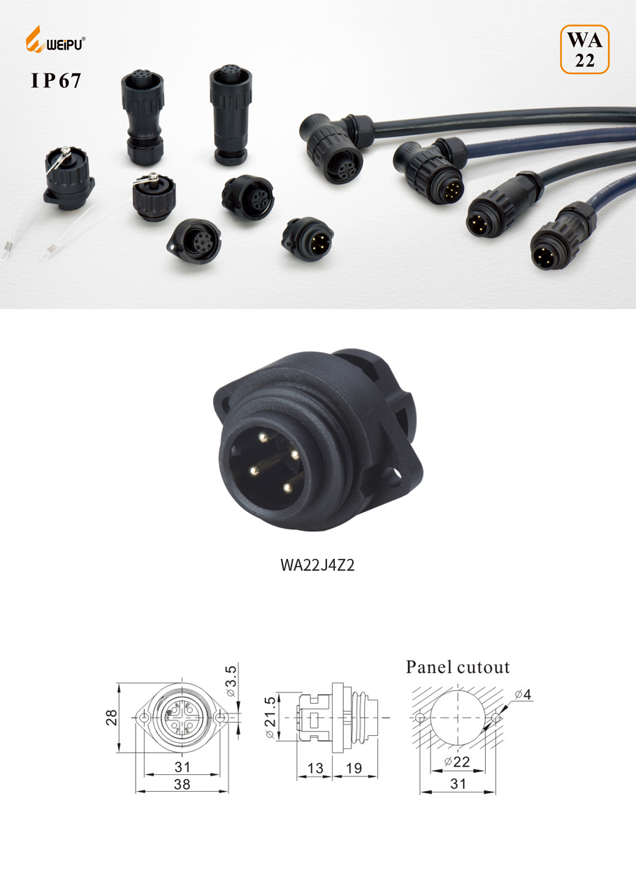 | 08、WA22J4Z2(3+PE male panel connector, screw termination) |