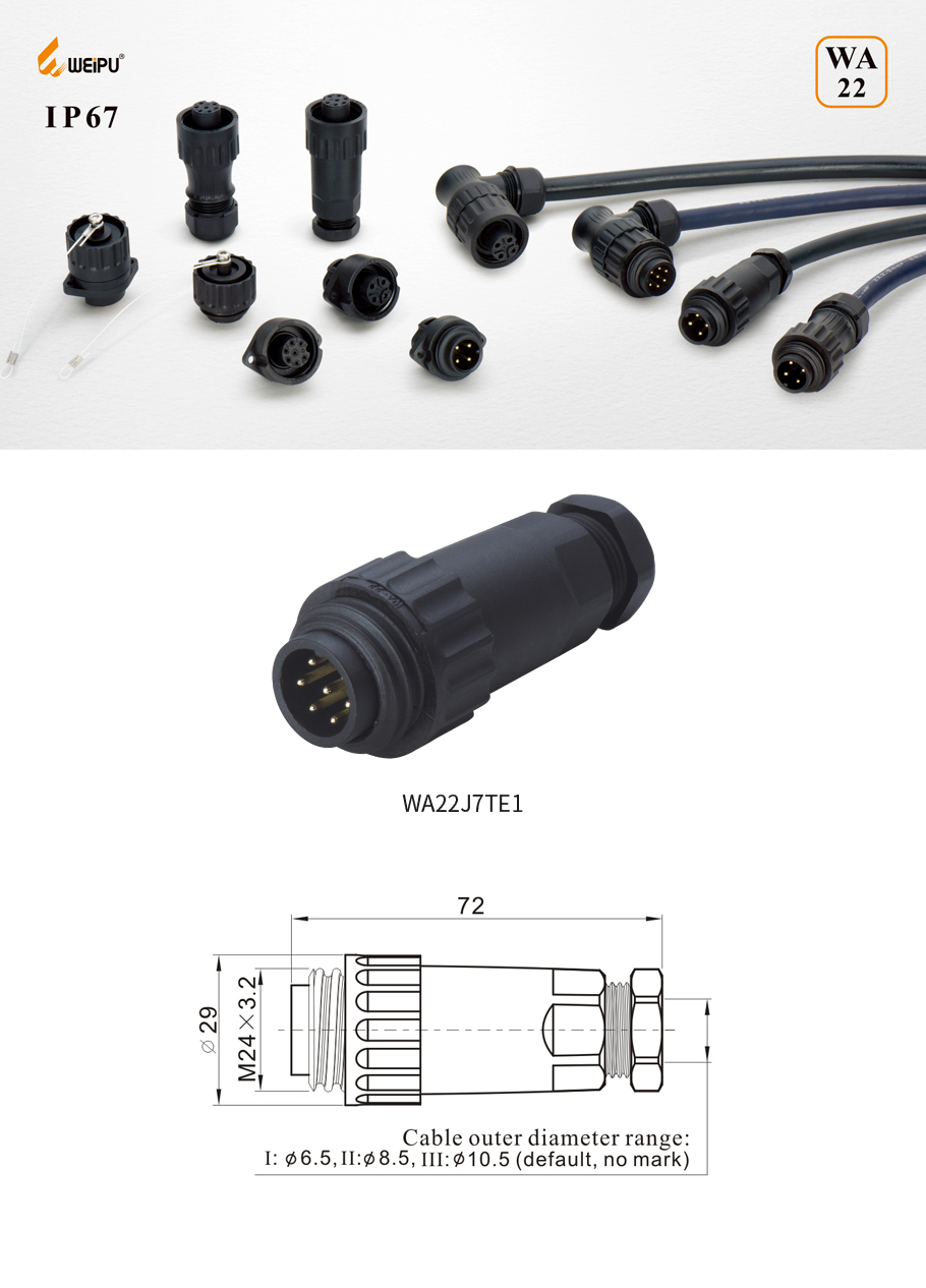 | 02、WA22J7TE1(6+PE male cable connector, solder termination) |