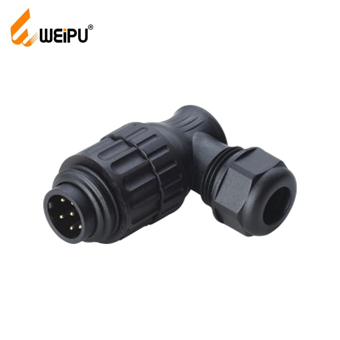 WA22J7TL1 6+PE male cable connector with angled back shell IP67