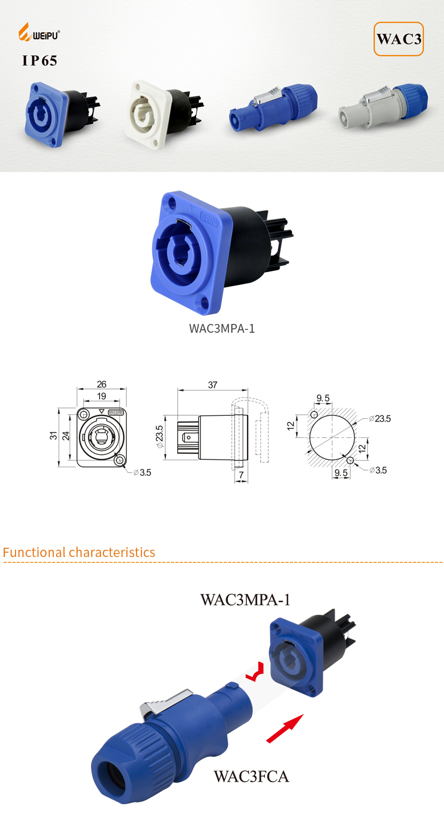 | Termination | Plug: screw, Rceptacle: 3/16″ flat tab terminals |