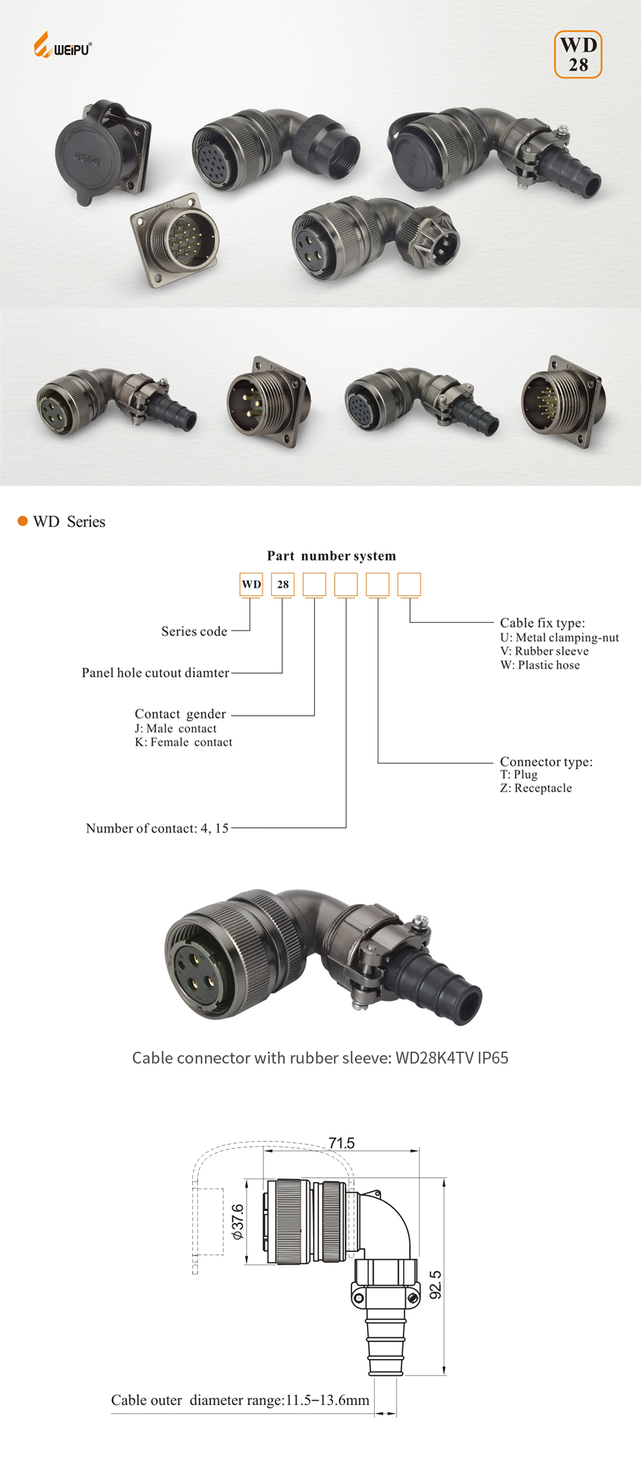 | 04、Cable connector with rubber sleeve:WD28K4TV IP65 |