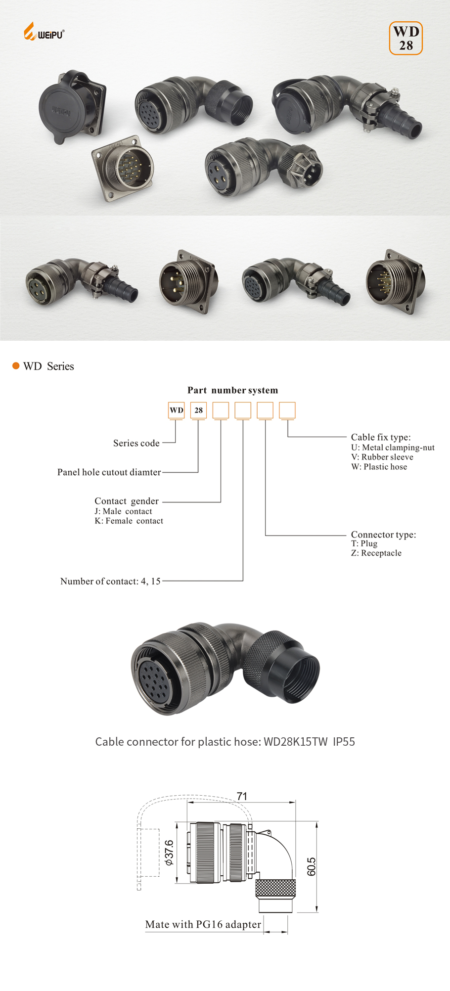 | 05、Cable connector with rubber sleeve: WD28J15Z IP65 |