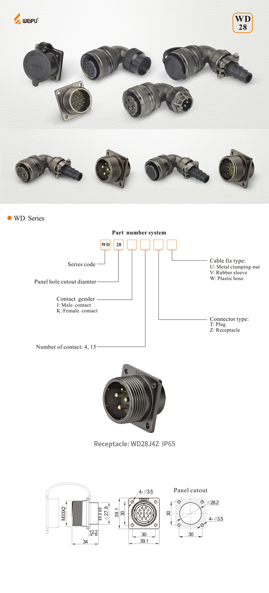 | 01、Receptacle:WD28J4Z IP65 |
