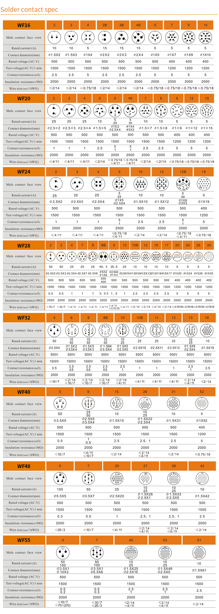 WF series is a IP55-67 waterproof connector, threaded coupling, it is a very strong connector, designed for indoor I outdoor, cold or hot , hush conditions.
