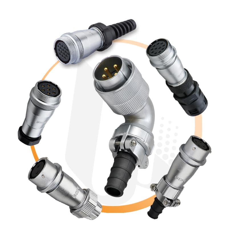 | 07、Plug with angled back shell and cable clamping plates IP65 | 17、n-line receptacle with anti-bending sleeve IP67 |