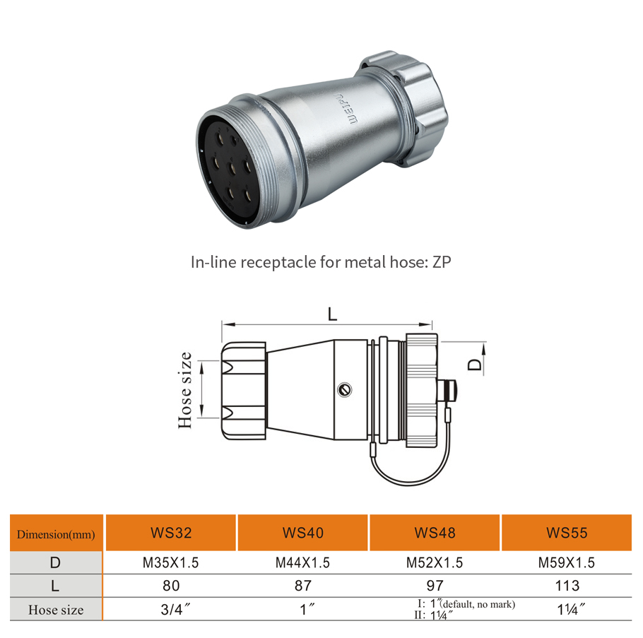 WEIPU WS-ZP Series In-line Receptacle Connector