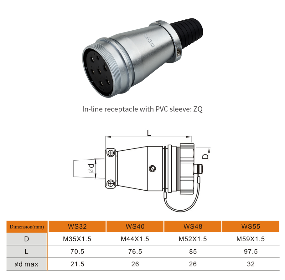 WEIPU WS-ZQ Series In-line Receptacle Connector