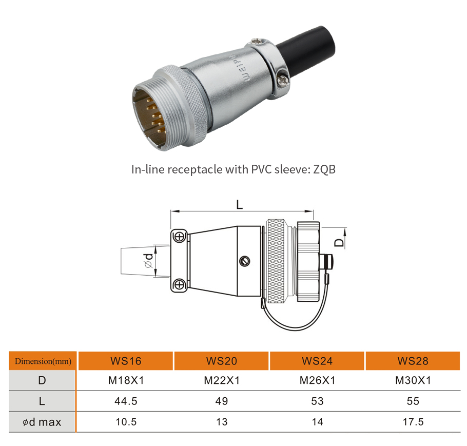 WEIPU WS-ZQB Series In-line Receptacle Connector
