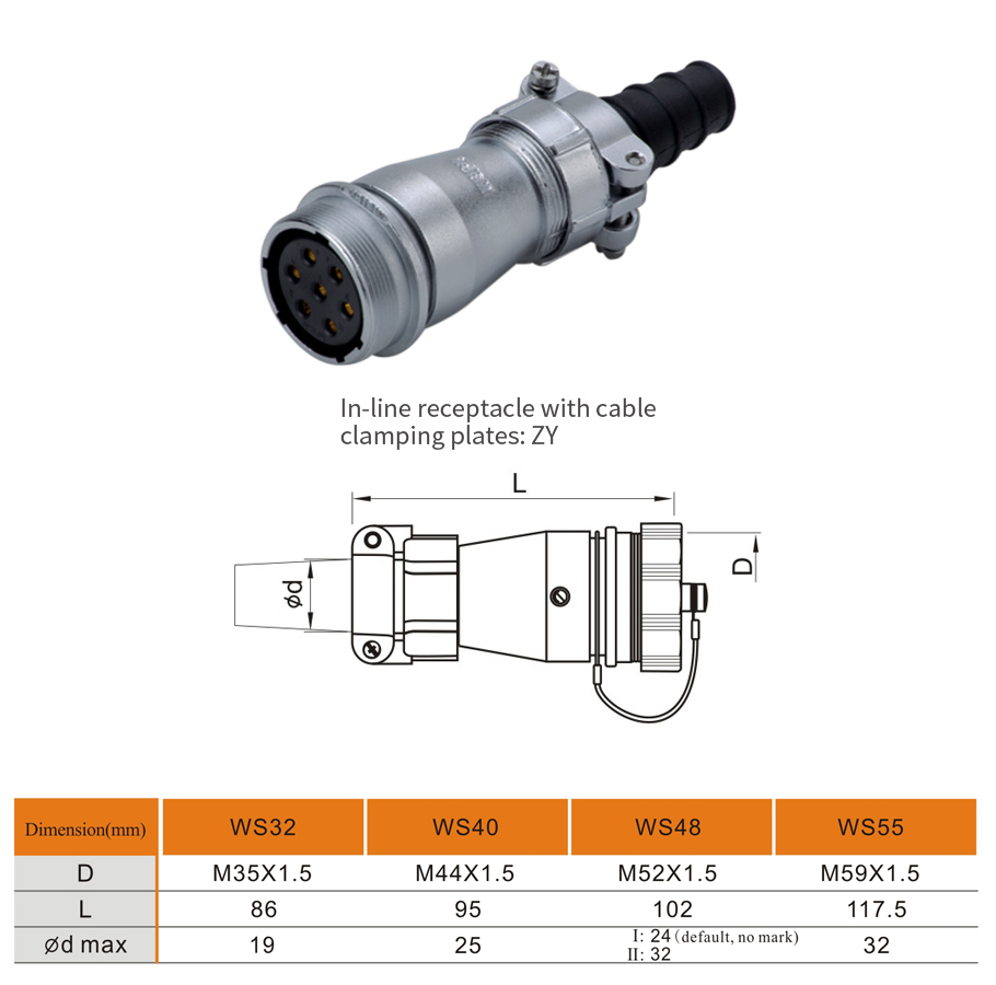 WEIPU WS-ZY Series In-line Receptacle Connector