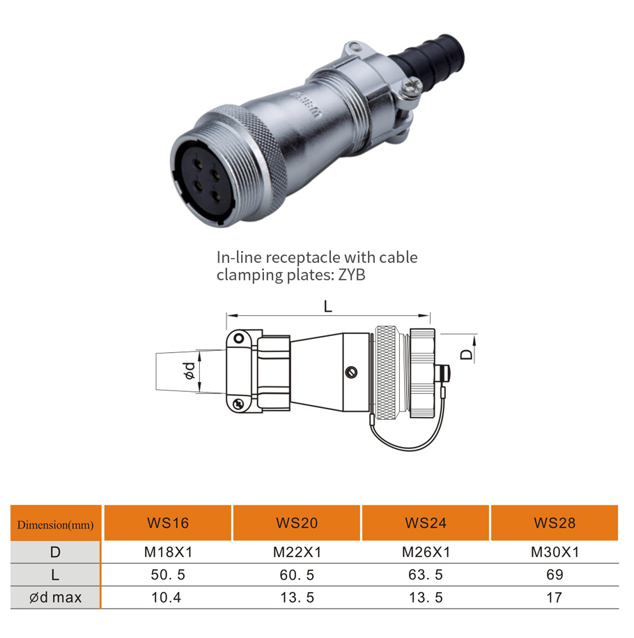 WEIPU WS-ZYB Series In-line Receptacle Connector