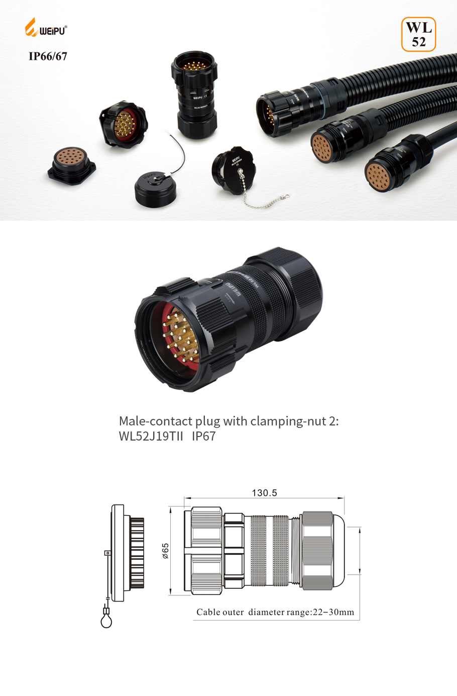 | 03、Male-contact plug with clamping-nut 2: WL52J19TII IP67 |