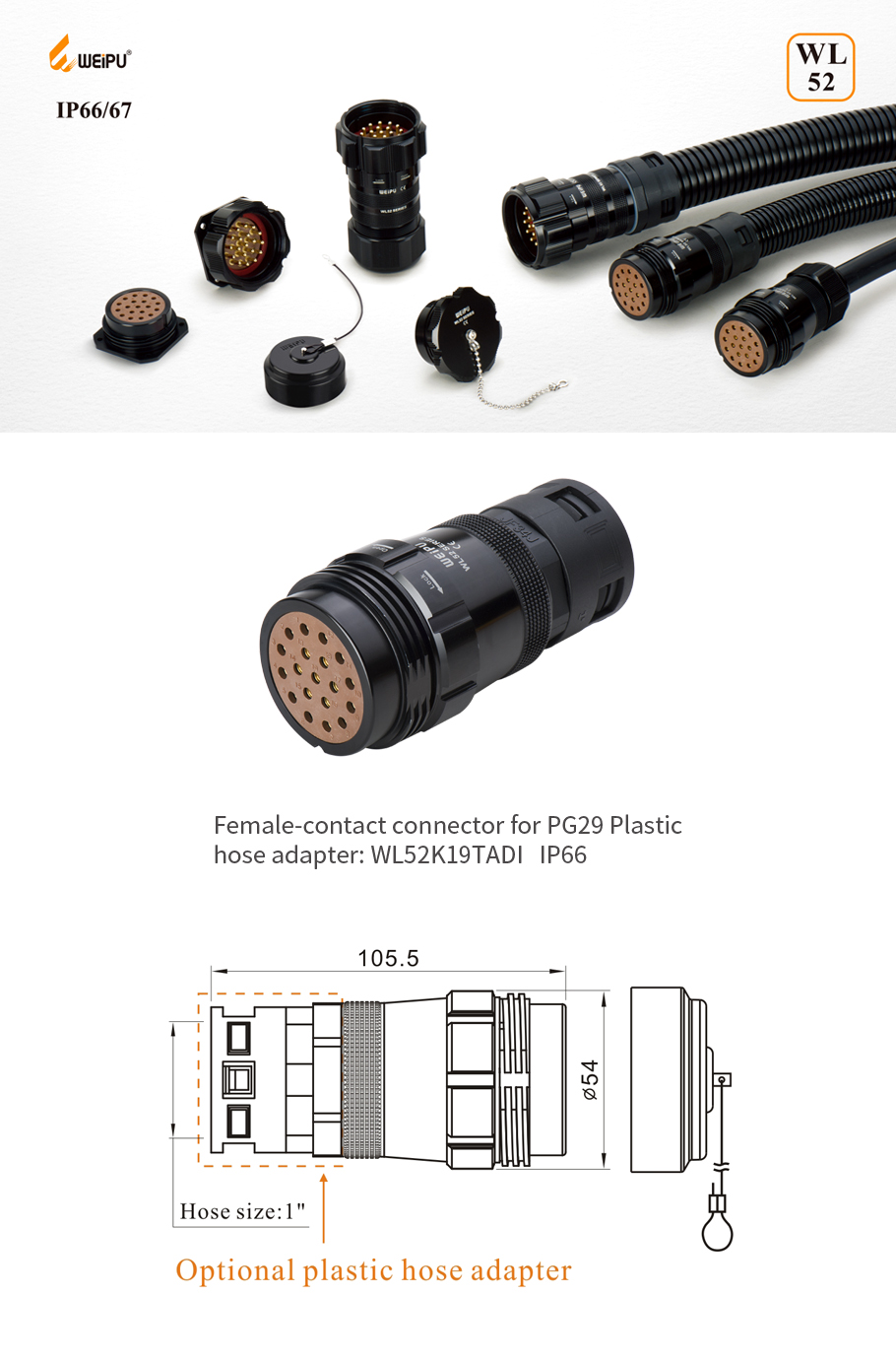 | 09、Female-contact connector for PG29 Plastic hose adapter: WL52K19TAD I IP66 |