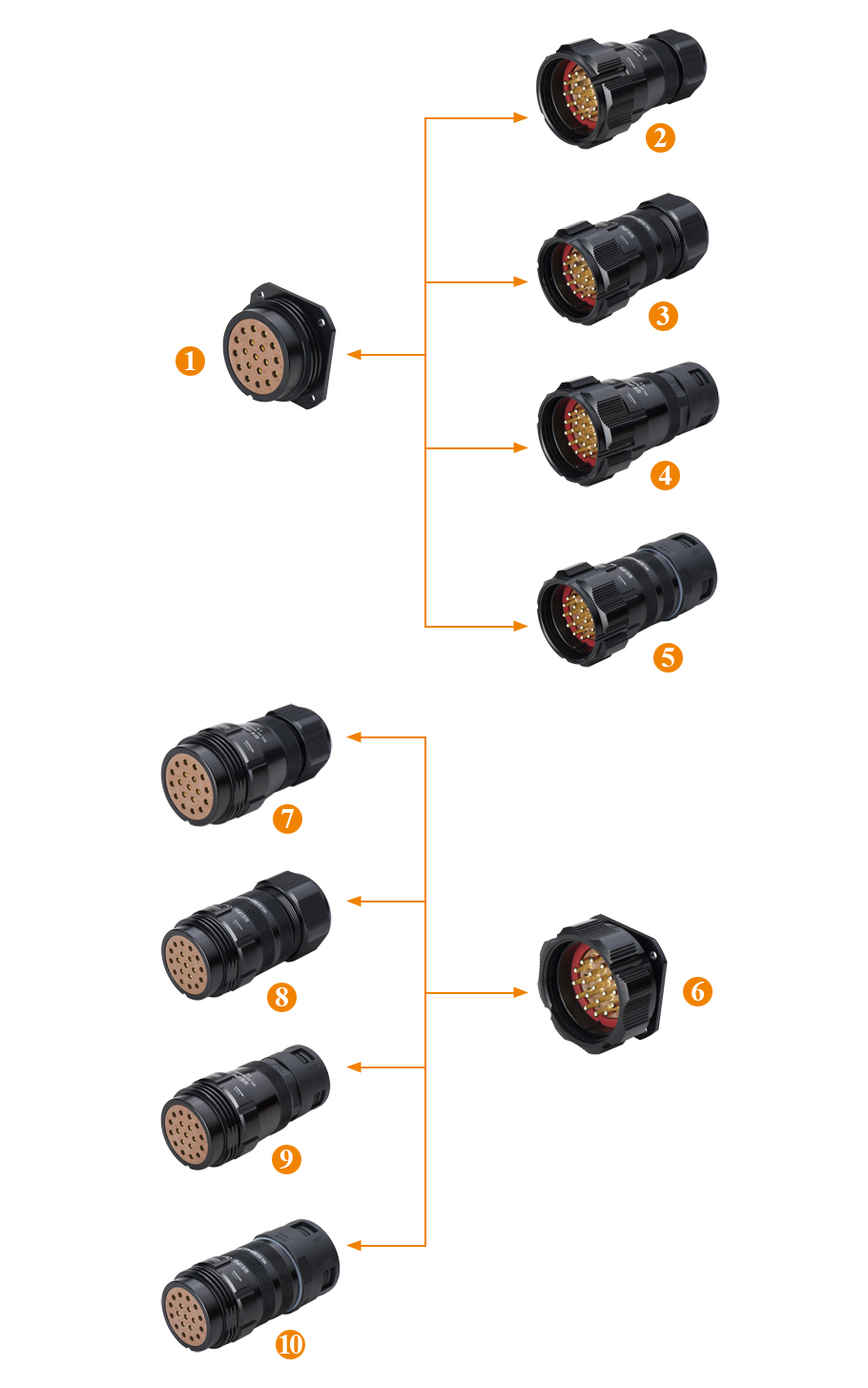 | 08、Female-contact connector with clamping-nut 2: WL52K19TII IP67 |