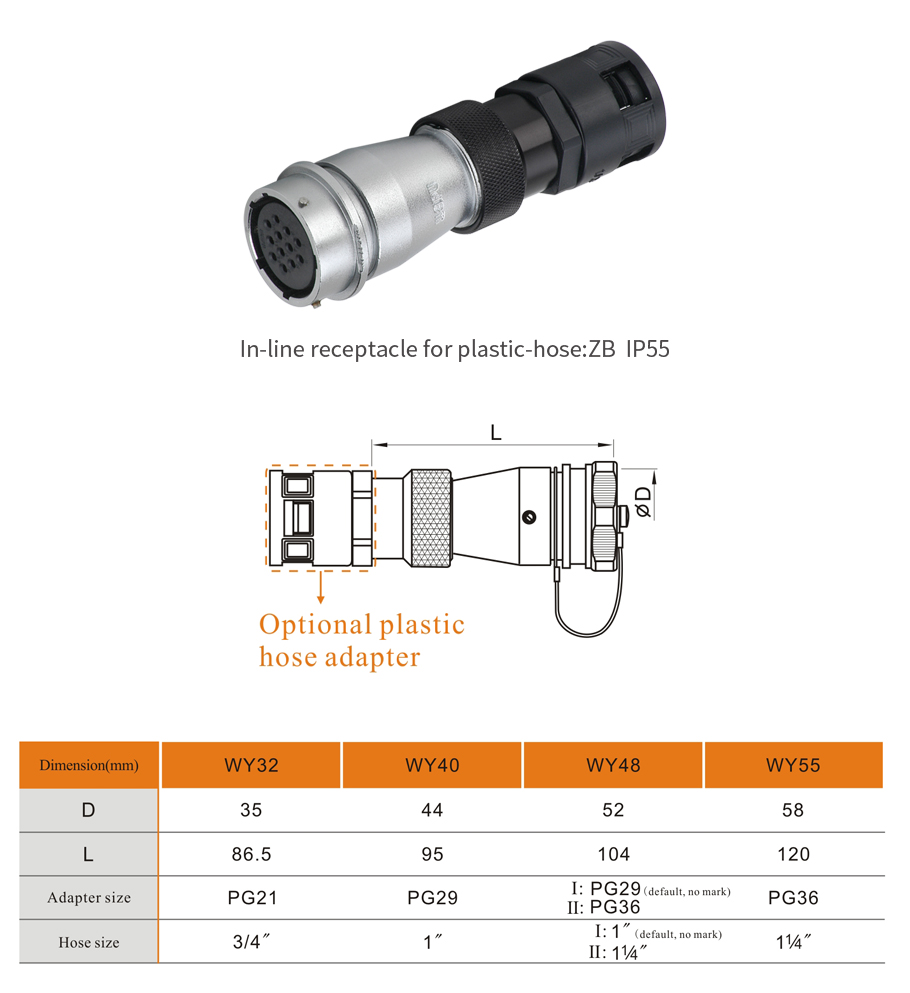 WEIPU WY-ZBB Series In-line Receptacle Connector