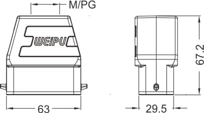 Heavy duty connector housings are made of cast aluminum or flame retardant thermoplastic materials and are powder coated to withstand impact and mechanical pressure.