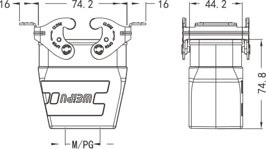 Home|Heavy Duty Connector (Rectangle)|Hoods/Housings|10B Metal hoods/housings(IP65)|HA10B-MCH-2L/W standard electrical connection components for Industry 4.0