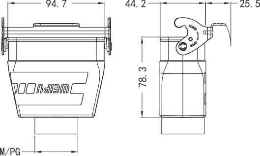 Home|Heavy Duty Connector (Rectangle)|Hoods/Housings|16B Metal hoods/housings(IP65)|HA16B-MCHV-1L/W standard electrical connection components for Industry 4.0