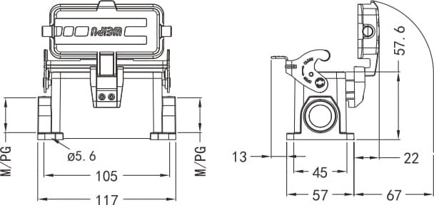 Home|Heavy Duty Connector (Rectangle)|Hoods/Housings|16B Metal hoods/housings(IP65)|HA16B-SF-1L/W-MCV standard electrical connection components for Industry 4.0