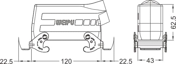 Home|Heavy Duty Connector (Rectangle)|Hoods/Housings|24B Metal hoods/housings(IP65)|HA24B-PS-2L/W standard electrical connection components for Industry 4.0