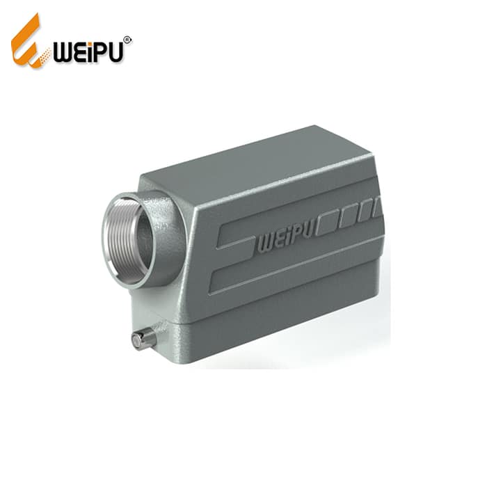 Heavy duty connector housings are made of cast aluminum or flame retardant thermoplastic materials and are powder coated to withstand impact and mechanical pressure.