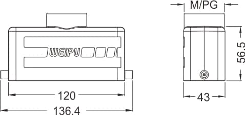Home|Heavy Duty Connector (Rectangle)|Hoods/Housings|24B Metal hoods/housings(IP65)|HA24B-PT-2B standard electrical connection components for Industry 4.0
