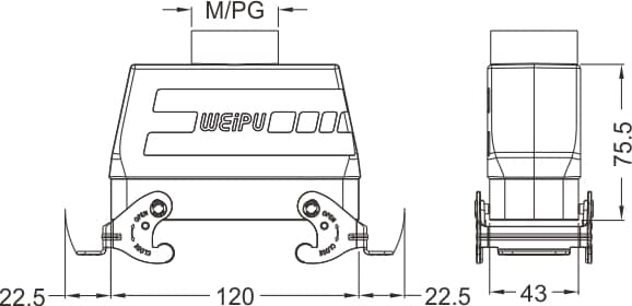 Home|Heavy Duty Connector (Rectangle)|Hoods/Housings|24B Metal hoods/housings(IP65)|HA24B-PTH-2L/W standard electrical connection components for Industry 4.0