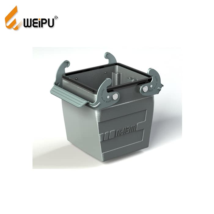 Heavy duty connector housings are made of cast aluminum or flame retardant thermoplastic materials and are powder coated to withstand impact and mechanical pressure.